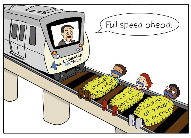 Yes, there's Gov. Cuomo still bull-headedly pursuing a "wrong way" AirTrain between LaGuardia Airport and an already overcrowded subway train and an unconnected LIRR spur line at Citi Field. As we've also reported, the entire project is basically a people mover to a parking lot.