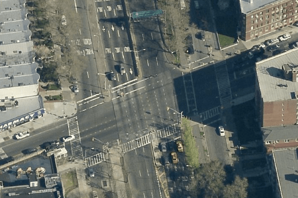 Lander added that a few years ago, NYC DOT installed a pedestrian island on the south side of the intersection, where state DOT approval is not required.