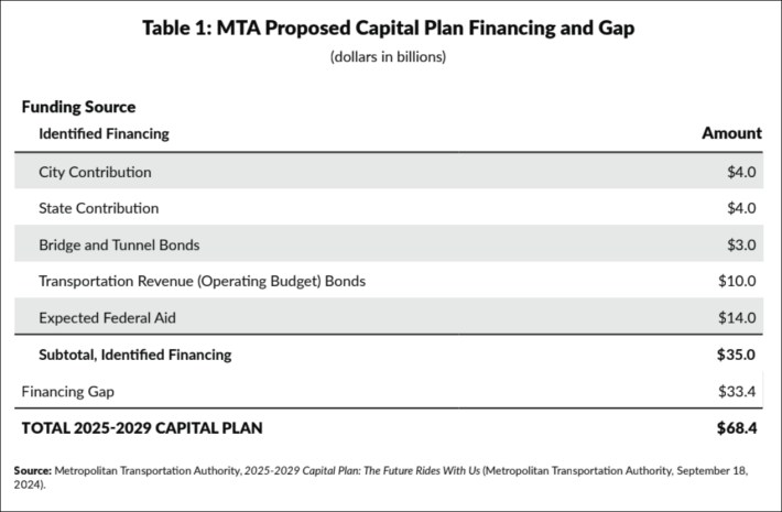 All that would still leave a $16-billion funding shortfall. To fill that, state leaders could use a combination of increased taxes, labor cost efficiencies, a crackdown on fare evasion and regulatory changes to lower capital costs, according to the report, "All Aboard: How to Fairly Fund MTA Capital Investment Now."