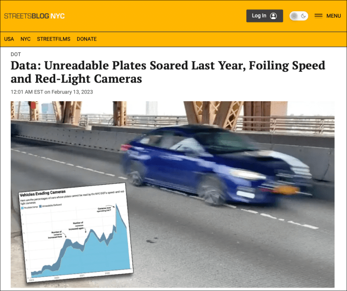 When Lander included in rejections because of obstructed plates, that number rose to $54 million in just those six months. Obstructed or defaced plates comprise the largest portion of the rejected tickets, a problem that Streetsblog has also been documenting and videotaping.