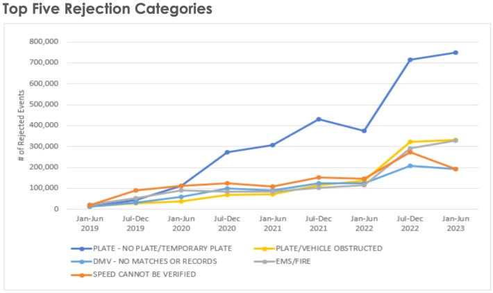 Benson also said that speeding by ambulances and fire department vehicles are rejected by Verra for legitimate reasons, though he did not specify how many of the millions of rejections are due to emergency vehicles. The Lander audit says the number is around 320,000 incidents in the first half of 2023.