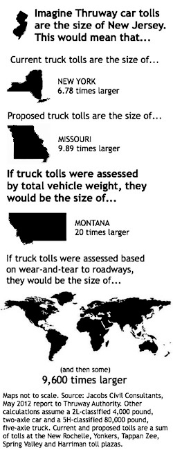 No one in New York is even thinking about an exponential increase in truck tolls, but the outsized impact of heavy trucks on road maintenance shouldn't be forgotten as the toll hike, which only needs the consent of the Thruway Authority board to proceed, draws closer. If approved at this month's board meeting, it could go into effect as soon as September 30.