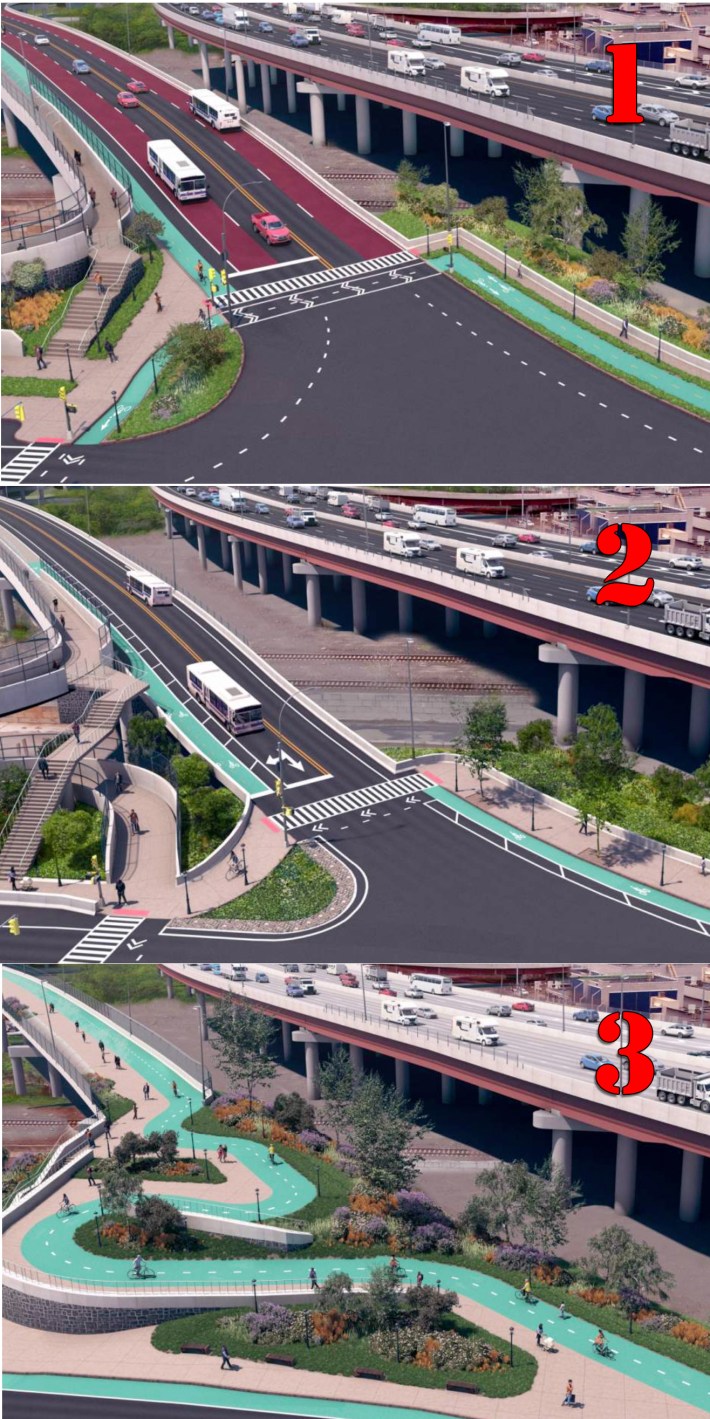 Environmental advocates in the Bronx have consistently opposed even turning a diverter road into a pedestrian and cyclist crossing because they note that the structure would still be a massive, highway-sized piece of concrete looming over the park and the Bronx River itself.