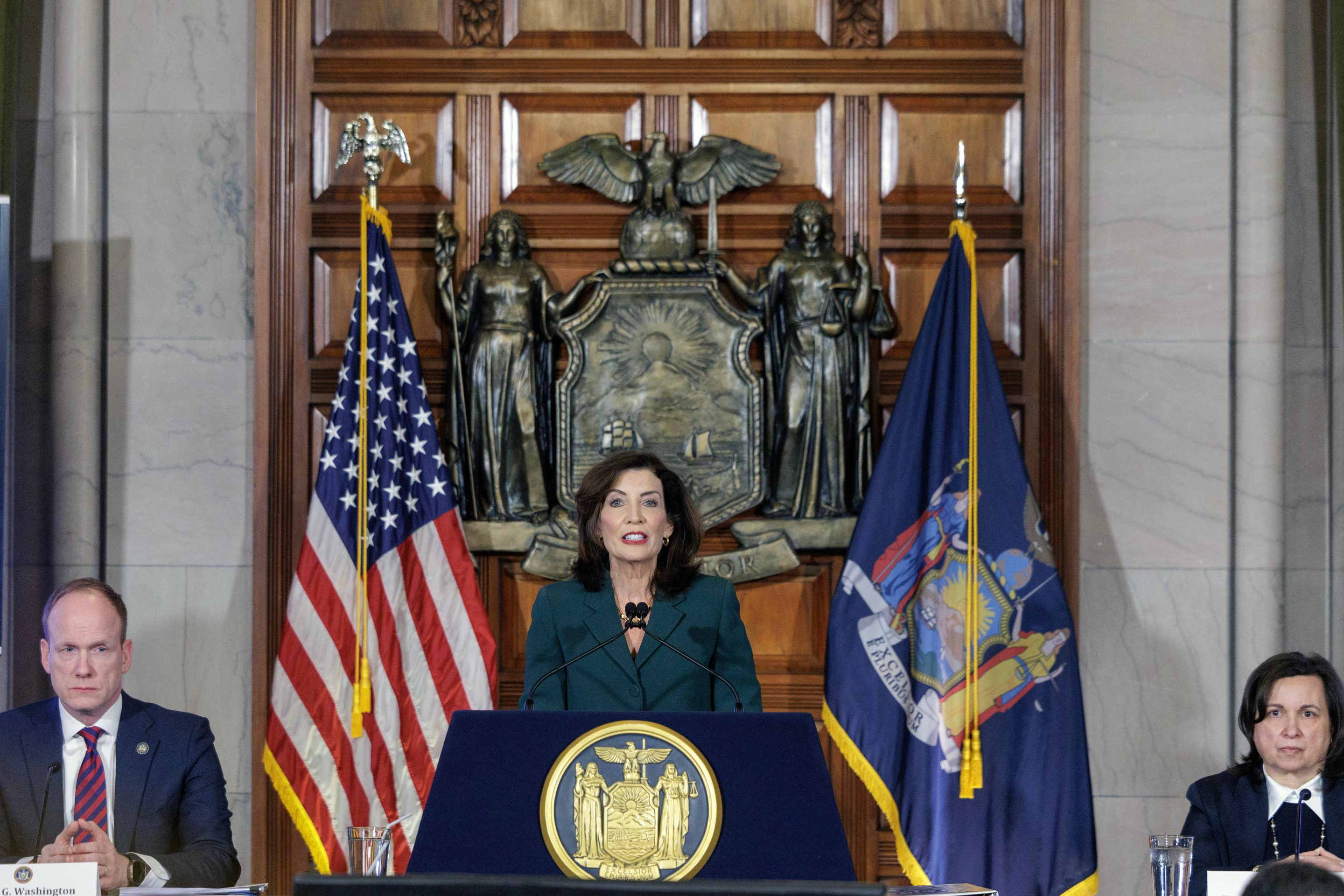 It's the first comments to the press corps from top Albany leadership since the governor made the proposal in her State of the State address. State Senate Majority Leader Andrea Stewart-Cousins said on NY1's Inside City Hall last week only that her chamber would "take a look and see what the governor is proposing and see what we can actually do that could be helpful in this affordability crisis."