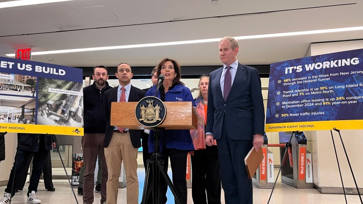 The presser followed Department of Transportation Secretary Sean Duffy's announcement at around 12:30 p.m. on Wednesday that the feds had pulled approval for congestion pricing, a promise that Trump made on the campaign trail. In his announcement, Duffy said the White House was killing the toll out of concern for the “working class,” though he failed to mention the millions of working-class New Yorkers who rely on public transit, and the fact that the vast majority who work in the central business district don’t drive (not to mention that the ones who do are, on average, wealthier than their transit-using neighbors).