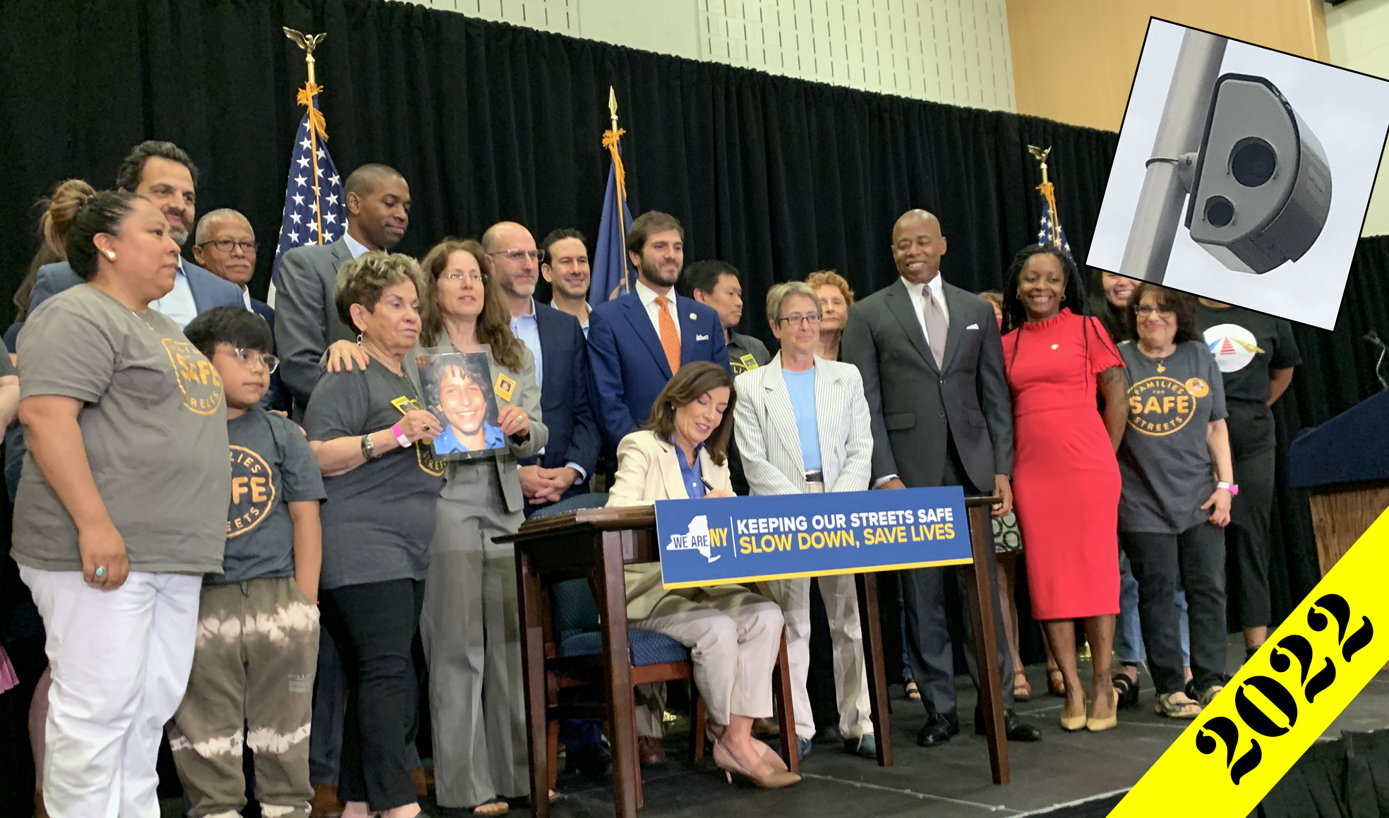 The speed camera bill signing today expands Gov. Hochul's support for automated enforcement in New York and beyond. In October, she signed a bill reauthorizing the city's red light camera program, expanding it from 150 intersections to 600 — a compromise from the 2,250 corners that supporters sought.