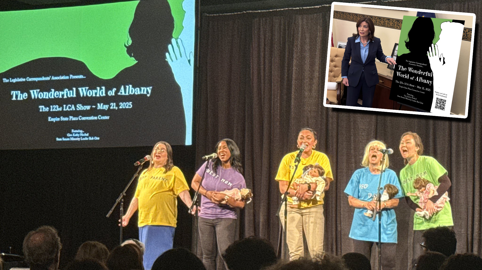 By the final chorus — "Hochul screwed ya/Hochul screwed ya" — many were openly singing along. That included Office of General Services Commissioner Jeanette Moy.