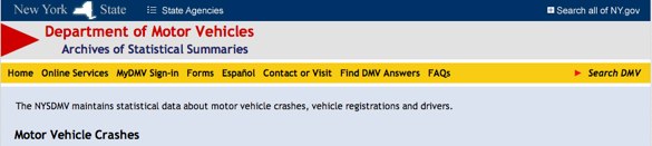 On its 2011 data web page, and in each of its 2011 reports, DMV refers to traffic crashes as "crashes." "Accident" does not appear in any of the agency's 2011 materials. The header on the statistical summaries archive page was also changed from "Motor Vehicle Accidents" to "Motor Vehicle Crashes."