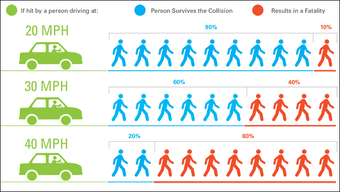 Reducing the speed of cars in this city is vitally important for safety, given that the likelihood that a person will survive being hit by a driver at 25 miles per hour is far far greater than if the driver is going 35 — or more, as Cuomo has been traveling (at a minimum):