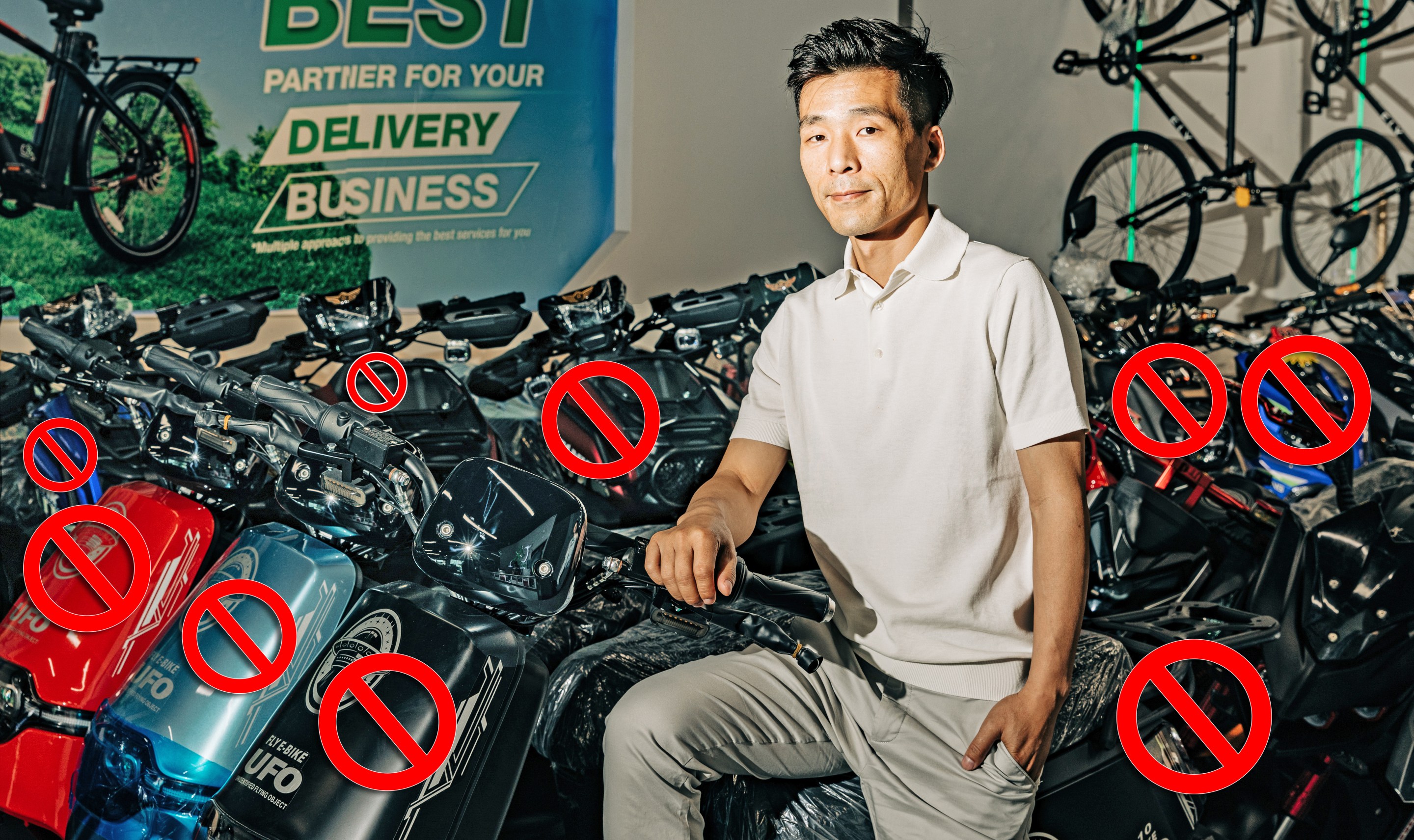 And in the one interview he gave to Streetsblog last year, Fly CEO Ou Zhou posed for a photo surrounded by his company's electric mopeds.