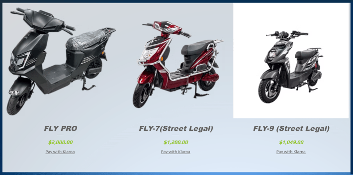 Since the state's announcement, electric and gas mopeds have entirely disappeared from the Fly E-Bike website, where they used to be prominent, as the screenshot below shows.