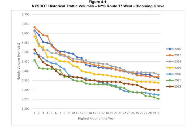 The state Department of Transportation used 15-year-old traffic models to justify its plan to expand Rt. 17 in Orange and Sullivan counties — ignoring a 10-year drop in traffic and overemphasizing a few busy summer weekends, according to a new report.