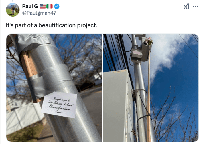 Another set of pictures was posted by @Paulgman47, whose bio describes himself in much the same terms as anti-camera Council Member Joe Borelli: "Brooklyn born; Italian 🩸; Francophile 🇲🇫, travel enthusiast; foodie; Independent thinker; MAGA extremist."