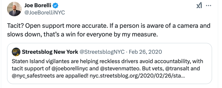 At the time, Borelli cheered the yellow ribbon campaign. And the borough's main vigilante, Scott LoBaido, was sometimes spotted holding a sign to alert drivers of a nearby camera. (LoBaido was recently arrested for protesting congestion pricing.)