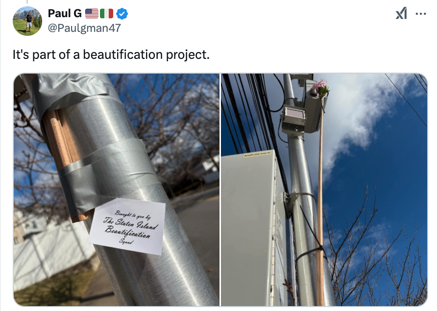 Another set of pictures was posted by @Paulgman47, whose bio describes himself in much the same terms as anti-camera Council Member Joe Borelli: “Brooklyn born; Italian 🩸; Francophile 🇲🇫, travel enthusiast; foodie; Independent thinker; MAGA extremist.”