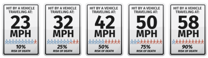 Pedestrians struck by drivers at that speed have a much greater likelihood of dying from injuries sustained in the crash than if they are struck by drivers who are following the law.