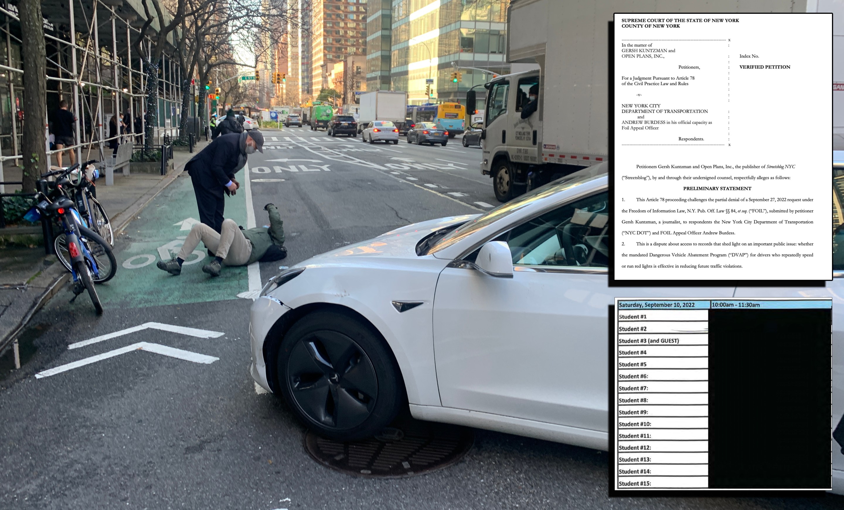 At issue in the legal battle is a Sept. 27, 2022 FOIL request by Streetsblog Editor Gersh Kuntzman seeking the license plate numbers of all drivers who took the safety course. The purpose of that request is simple: There is no other way to assess the utility of the safety course other than by checking the plate numbers of all course participants to see if they've been dinged for subsequent speeding tickets.
